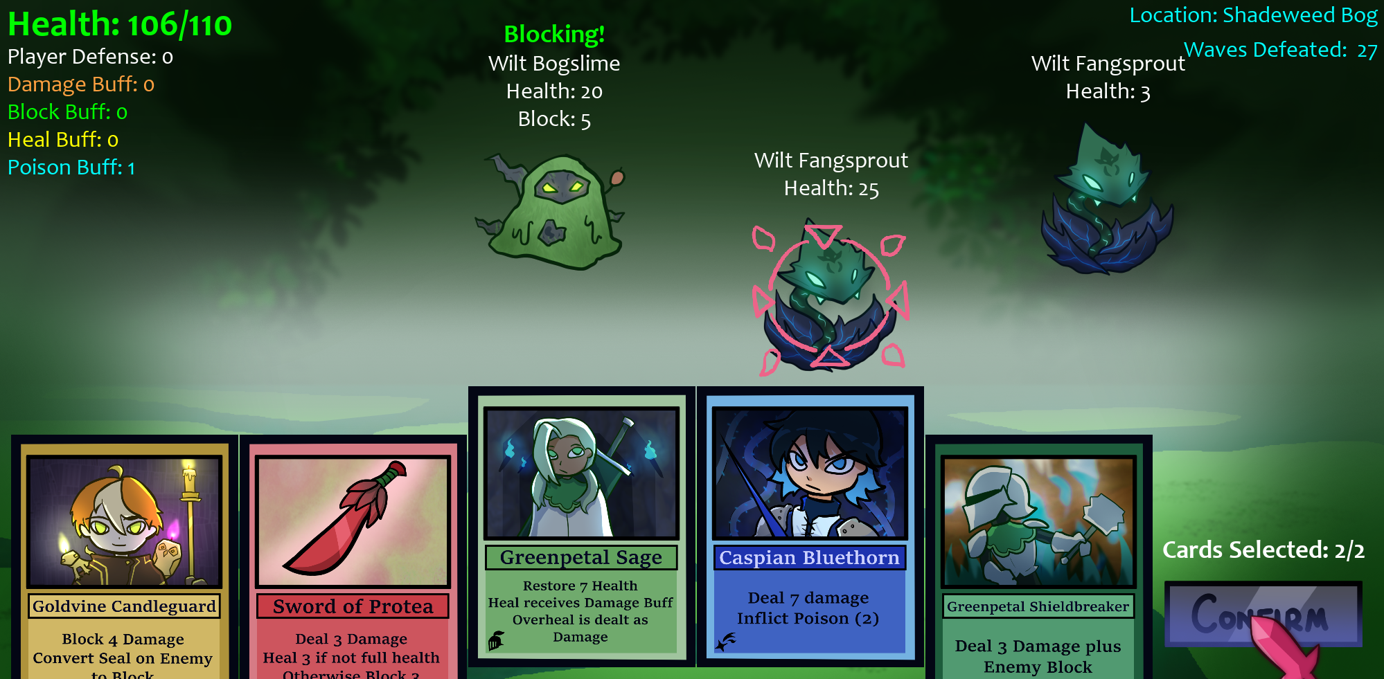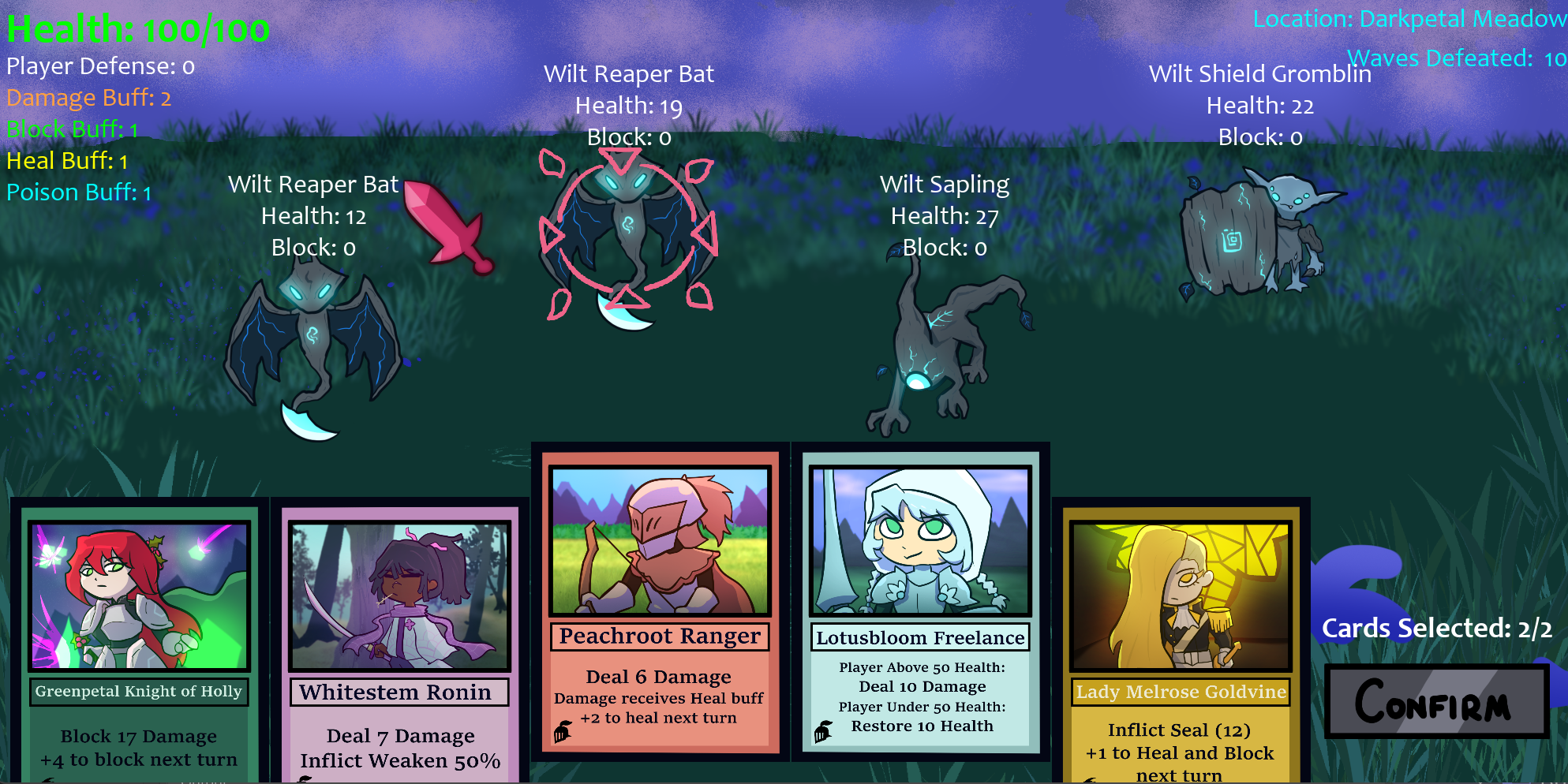 Appreciate the love! Yeah there was a Greenpetal hero named Cassandra that we have in our lore that I didn't end up adding to the game since her design wasn't as fleshed out as I'd liked it to be. If I had more time, I would've also loved to throw in more of the royal Crownflower family.